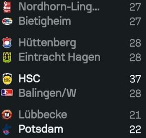 Aktuell liegen wir auf dem 15. Tabellenplatz - 3:7 Punkte