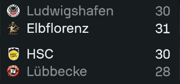 Damit liegen wir aktuell auf dem 9. Tabellenplatz - 8:10 Punkte